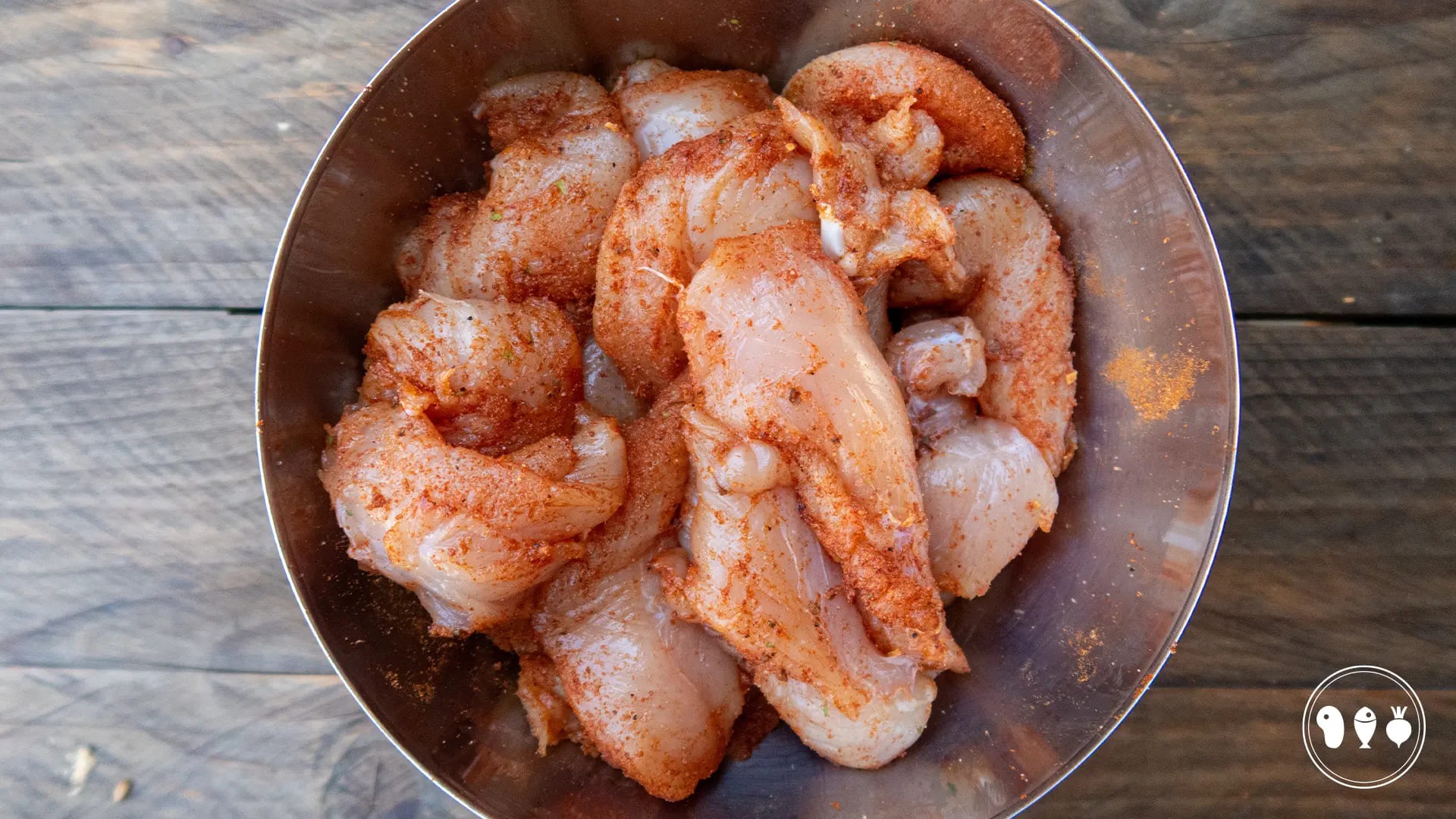 Snijd kipfilet of kippendijen in passende stukken of vlinder ze voor snellere en gelijkmatige garing. Marineer de kip goed met het sausmengsel en laat minimaal 30 minuten staan — liever zelfs langer voor diepere smaak.
